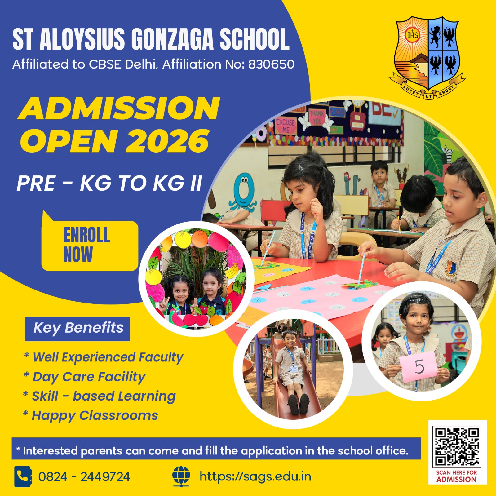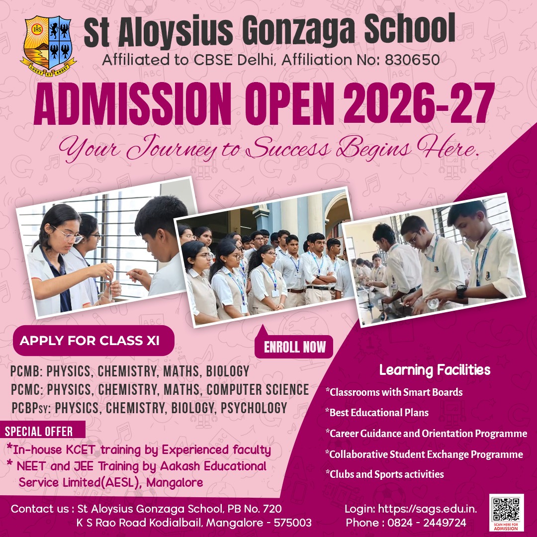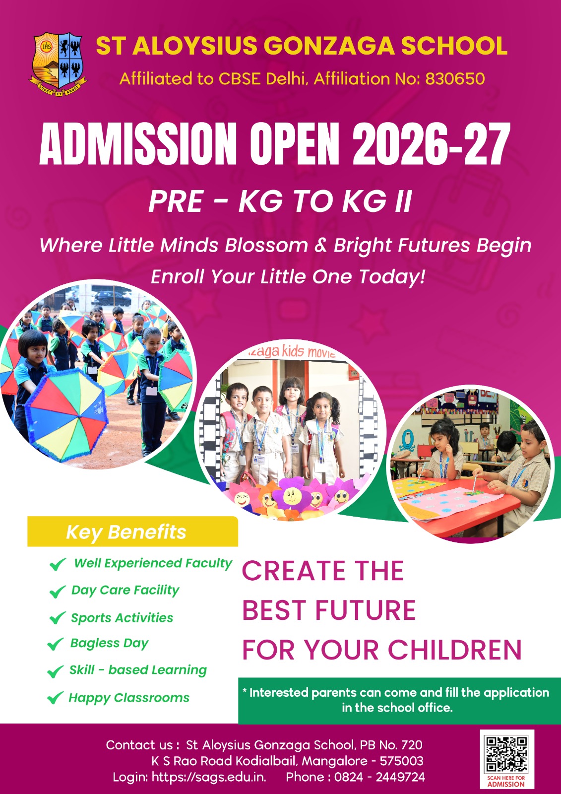 Welcome to St Aloysius Gonzaga School (SAGS), part of the St Aloysius Institutions in Mangaluru. Located in the heart of the city, SAGS is committed to shaping young minds and cultivating responsible global citizens...