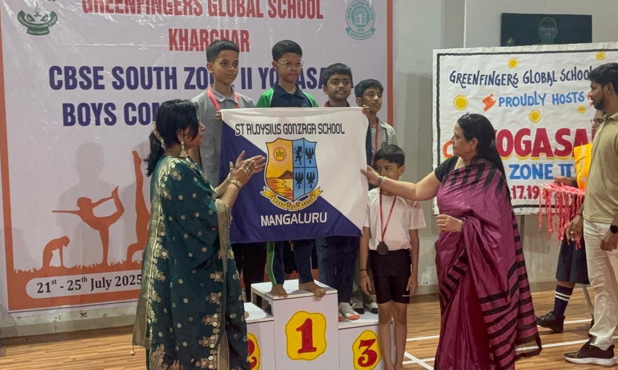 6. Students of St Aloysius Gonzaga School participated in the CBSE South Zone Chess Tournament, held in Harappanahalli in Davangere district from 13 September to 16 September 2024. Rion Braggs of Class VIII scored 7/7 points achieving 1st place on Board 2, while Vihaan Adarsh Lobo of Class VI scored 7/7 points, achieving 3rd place on Board 1.